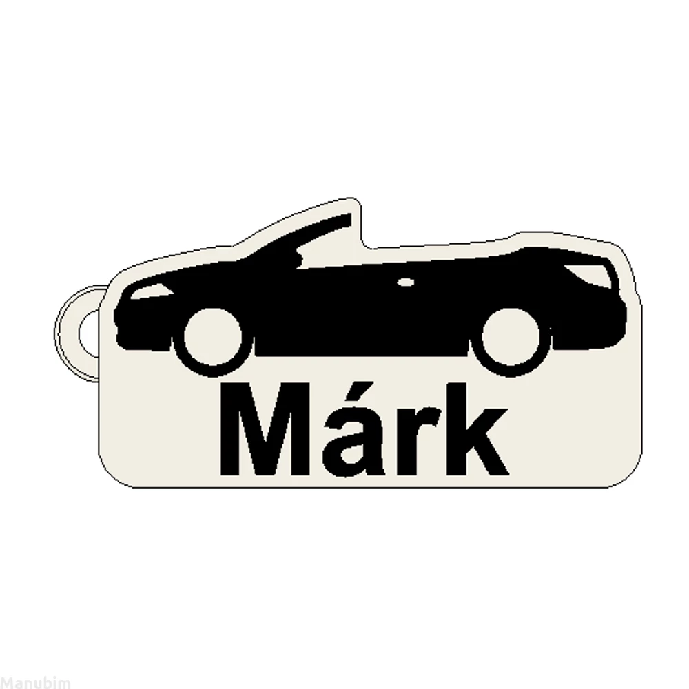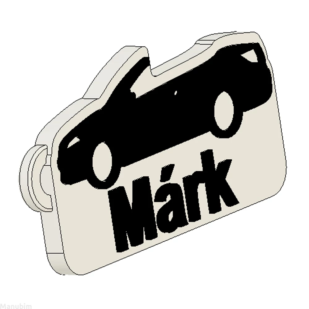 Custom Car Keychain "Márk" - (52x27x4 mm) - PLA- plastic - white/black