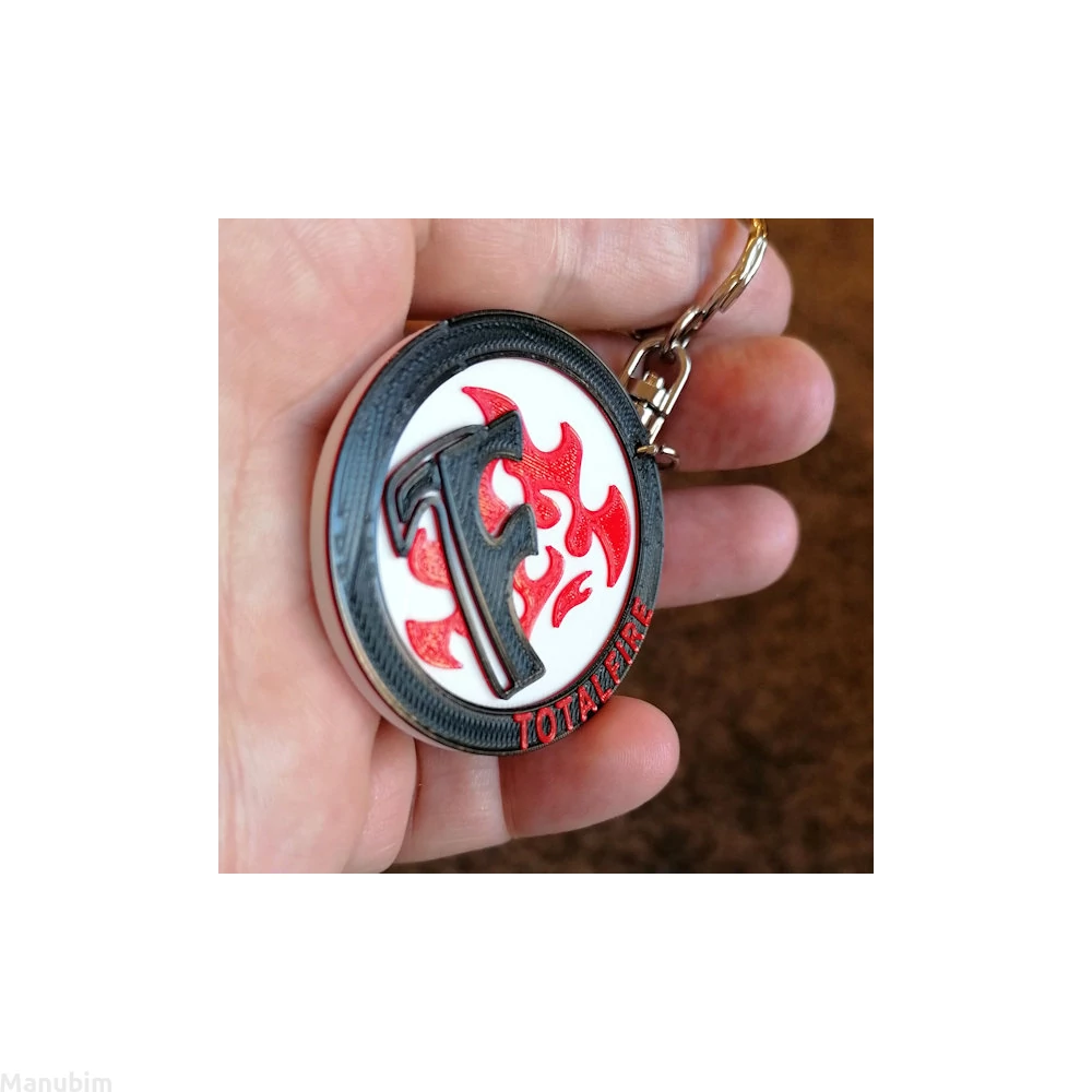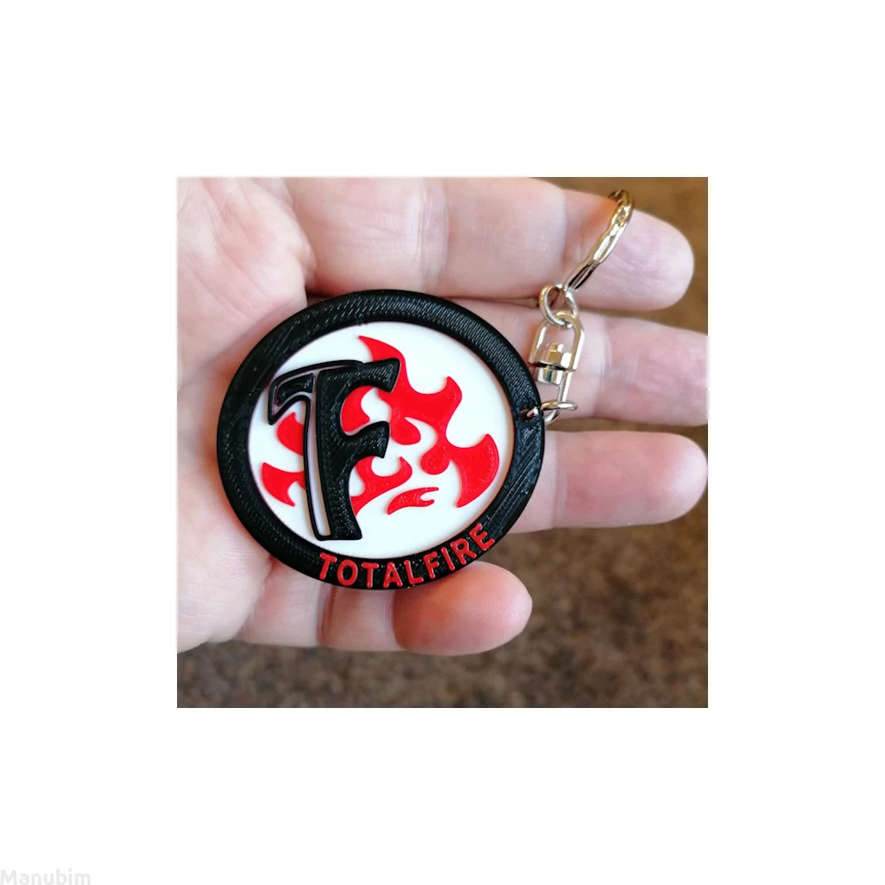 Custom Company Logo Keychain "Totalfire", PLA, plastic, white/black/red (55x50x4 mm)